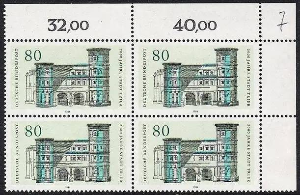 BUND 1984 Michel-Nummer 1197 postfrisch BLOCK ECKRAND oben rechts
