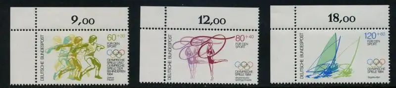 BUND 1984 Michel-Nummer 1206-1208 postfrisch SATZ(3) EINZELMARKEN ECKRÄNDER oben links