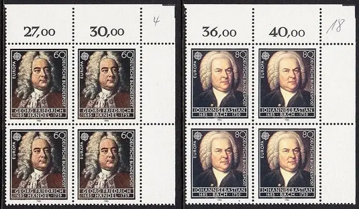 BUND 1985 Michel-Nummer 1248-1249 postfrisch SATZ(2) BLÖCKE ECKRAND oben rechts