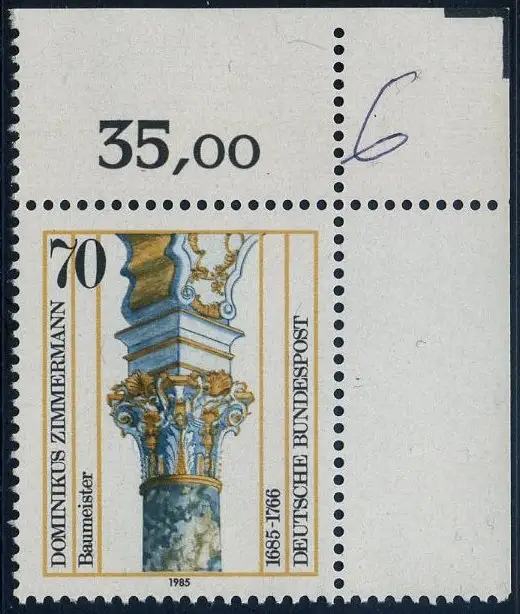BUND 1985 Michel-Nummer 1251 postfrisch EINZELMARKE ECKRAND oben rechts (b)