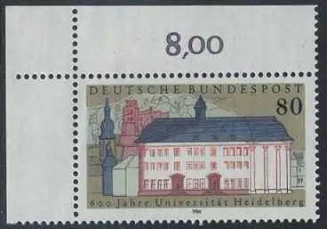 BUND 1986 Michel-Nummer 1299 postfrisch EINZELMARKE ECKRAND oben links