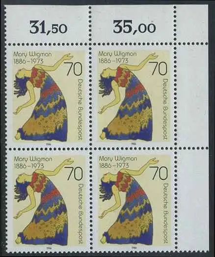 BUND 1986 Michel-Nummer 1301 postfrisch BLOCK ECKRAND oben rechts