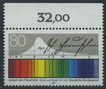 BUND 1987 Michel-Nummer 1313 postfrisch EINZELMARKE RAND oben (b)