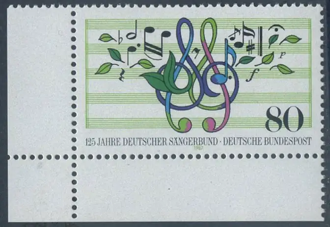 BUND 1987 Michel-Nummer 1319 postfrisch EINZELMARKE ECKRAND unten links