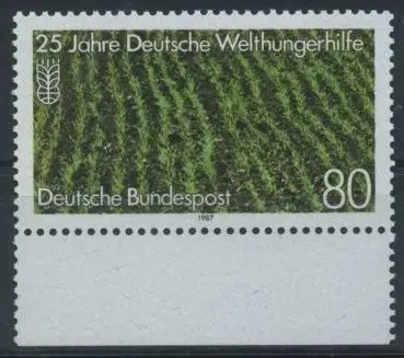 BUND 1987 Michel-Nummer 1345 postfrisch EINZELMARKE RAND unten
