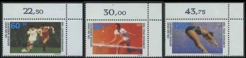 BUND 1988 Michel-Nummer 1353-1355 postfrisch SATZ(3) EINZELMARKEN ECKRÄNDER oben rechts