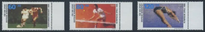 BUND 1988 Michel-Nummer 1353-1355 postfrisch SATZ(3) EINZELMARKEN RÄNDER rechts