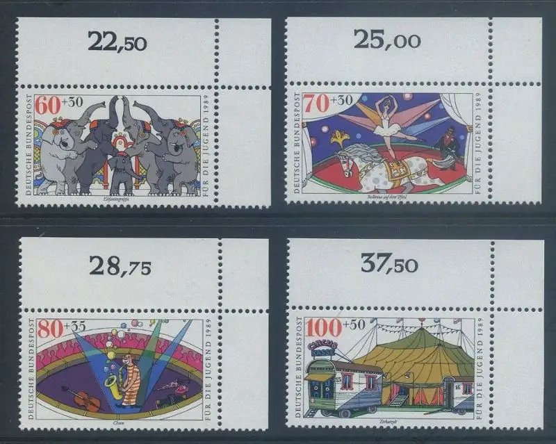 BUND 1989 Michel-Nummer 1411-1414 postfrisch SATZ(4) EINZELMARKEN ECKRÄNDER oben rechts