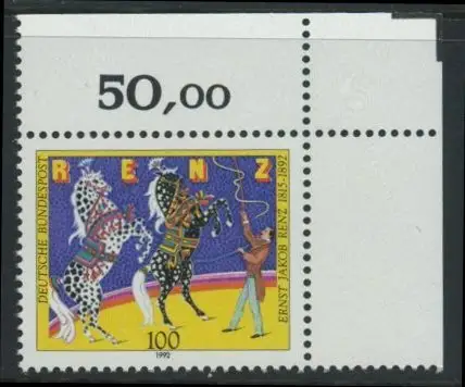 BUND 1992 Michel-Nummer 1600 postfrisch EINZELMARKE ECKRAND oben rechts (a)