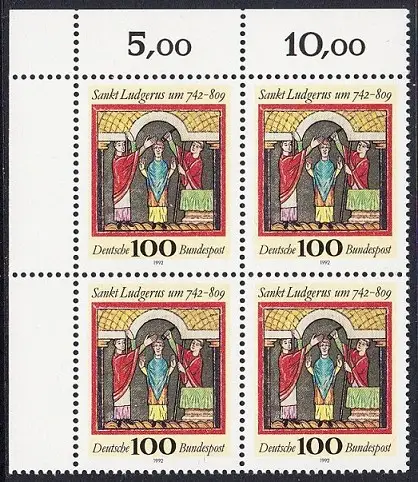 BUND 1992 Michel-Nummer 1610 postfrisch BLOCK ECKRAND oben links