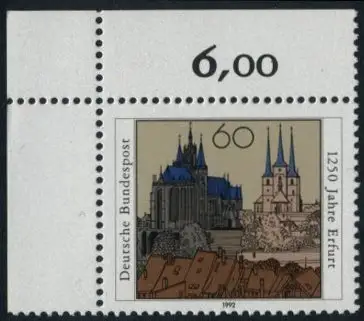 BUND 1992 Michel-Nummer 1611 postfrisch EINZELMARKE ECKRAND oben links