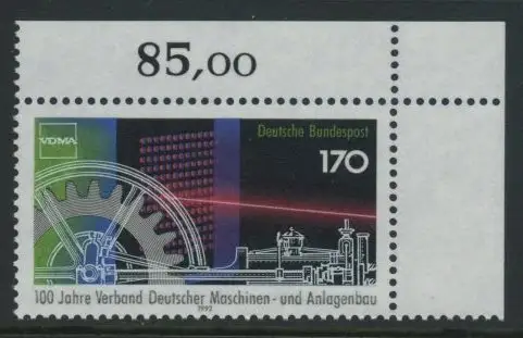 BUND 1992 Michel-Nummer 1636 postfrisch EINZELMARKE ECKRAND oben rechts (a)