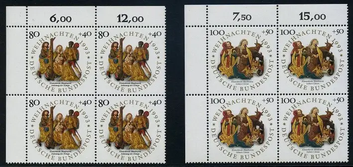 BUND 1993 Michel-Nummer 1707-1708 postfrisch SATZ(2) BLÖCKE ECKRAND oben links