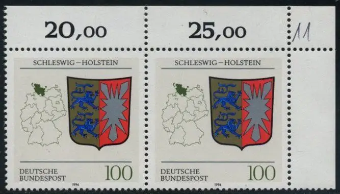 BUND 1994 Michel-Nummer 1715 postfrisch horiz.PAAR ECKRAND oben rechts