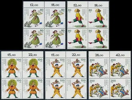 BUND 1994 Michel-Nummer 1726-1730 postfrisch SATZ(5) BLÖCKE RÄNDER oben