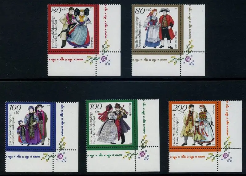 BUND 1994 Michel-Nummer 1757-1761 postfrisch SATZ(5) EINZELMARKEN ECKRÄNDER unten rechts