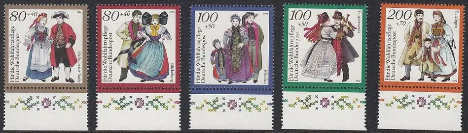 BUND 1994 Michel-Nummer 1757-1761 postfrisch SATZ(5) EINZELMARKEN RÄNDER unten (a)