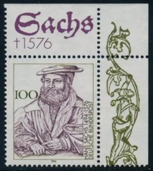 BUND 1994 Michel-Nummer 1763 postfrisch EINZELMARKE ECKRAND oben rechts