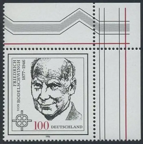 BUND 1996 Michel-Nummer 1835 postfrisch EINZELMARKE ECKRAND oben rechts