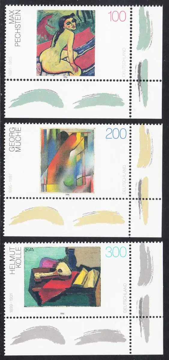 BUND 1996 Michel-Nummer 1843-1845 postfrisch SATZ(3) EINZELMARKEN Eckränder unten rechts