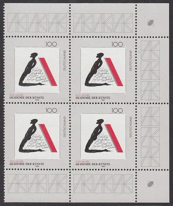 BUND 1996 Michel-Nummer 1866 postfrisch BLOCK ECKRÄNDER oben rechts/unten rechts