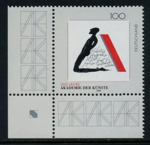 BUND 1996 Michel-Nummer 1866 postfrisch EINZELMARKE ECKRAND unten links