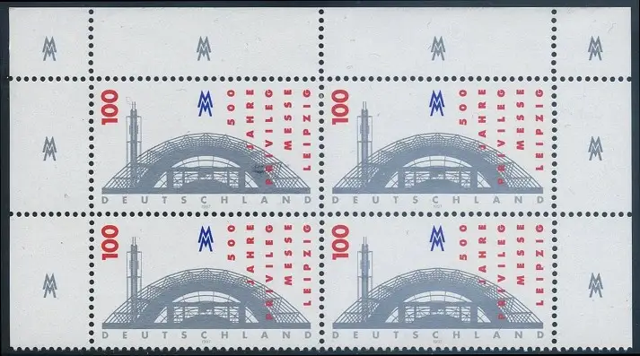BUND 1997 Michel-Nummer 1905 postfrisch BLOCK ECKRÄNDER oben rechts/oben links