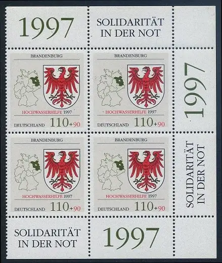 BUND 1997 Michel-Nummer 1941 postfrisch BLOCK ECKRÄNDER oben rechts/unten rechts