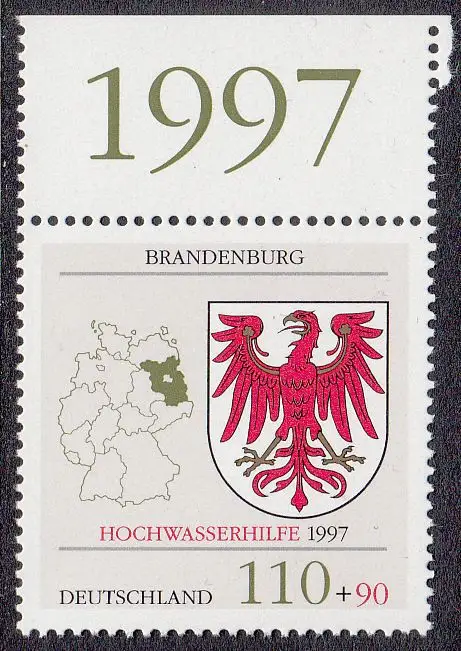 BUND 1997 Michel-Nummer 1941 postfrisch EINZELMARKE RAND oben (b)