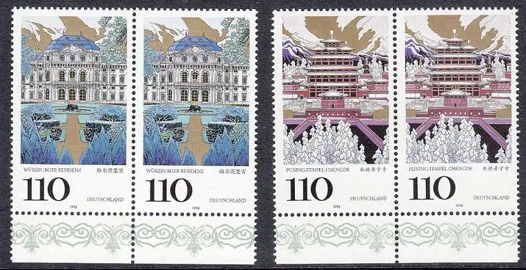 BUND 1998 Michel-Nummer 2007-2008 postfrisch SATZ(2) horiz.PAARE RÄNDER unten