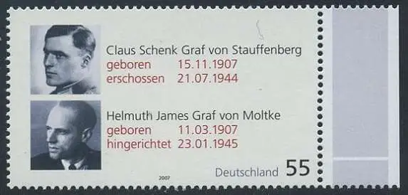 BUND 2007 Michel-Nummer 2590 postfrisch EINZELMARKE RAND rechts (b)