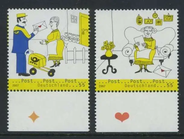 BUND 2007 Michel-Nummer 2620-2621 postfrisch SATZ(2) EINZELMARKEN RÄNDER unten (b)