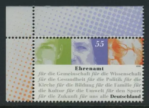 BUND 2008 Michel-Nummer 2674 postfrisch EINZELMARKE ECKRAND oben links