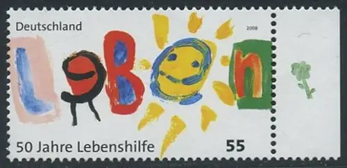 BUND 2008 Michel-Nummer 2702 postfrisch EINZELMARKE RAND rechts (c)