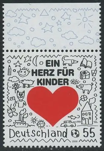 BUND 2008 Michel-Nummer 2706 postfrisch EINZELMARKE RAND oben (a)