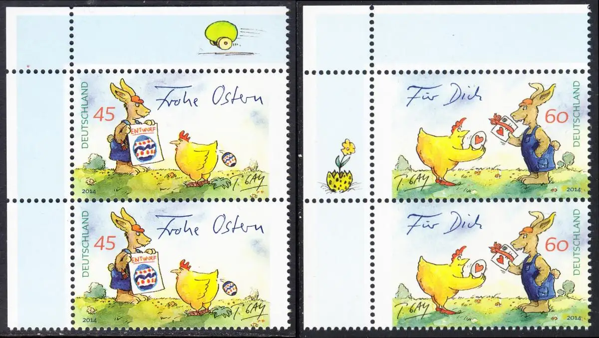 BUND 2014 Michel-Nummer 3063-3064 postfrisch SATZ(2) vert.PAARE ECKRÄNDER oben links