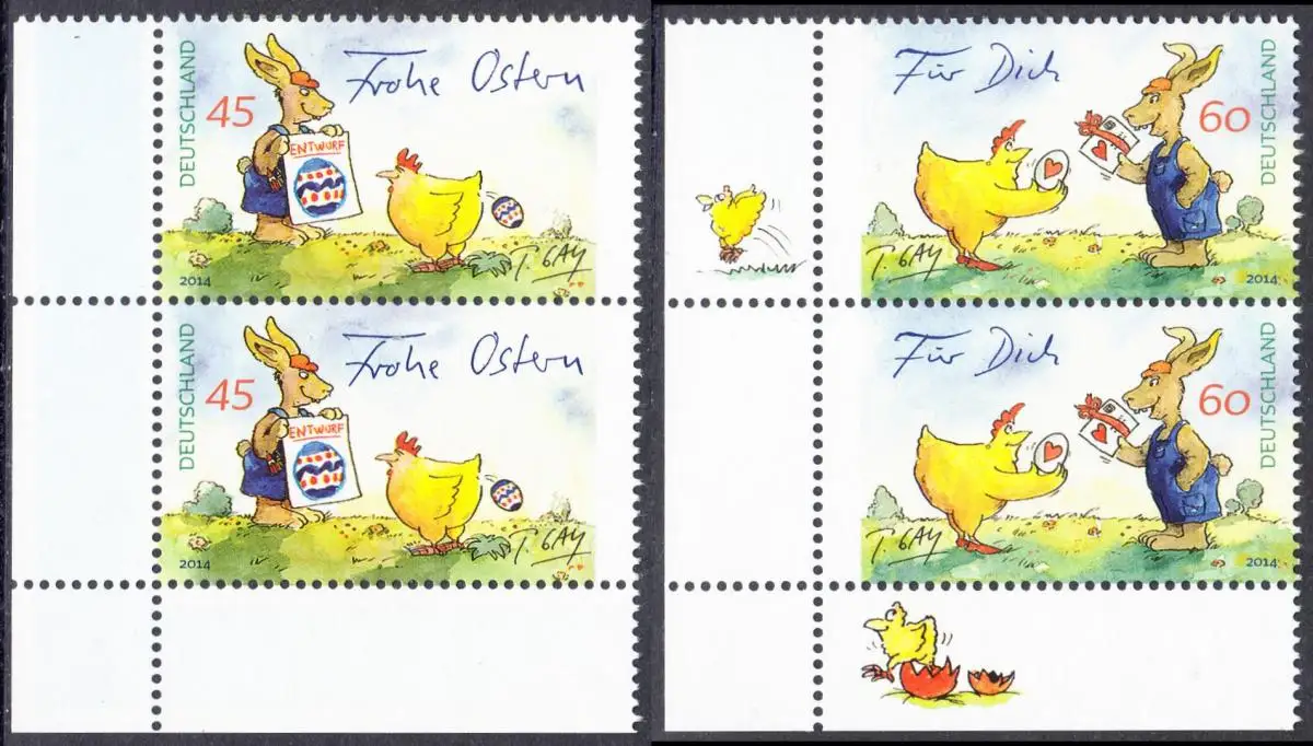 BUND 2014 Michel-Nummer 3063-3064 postfrisch SATZ(2) vert.PAARE ECKRÄNDER unten links