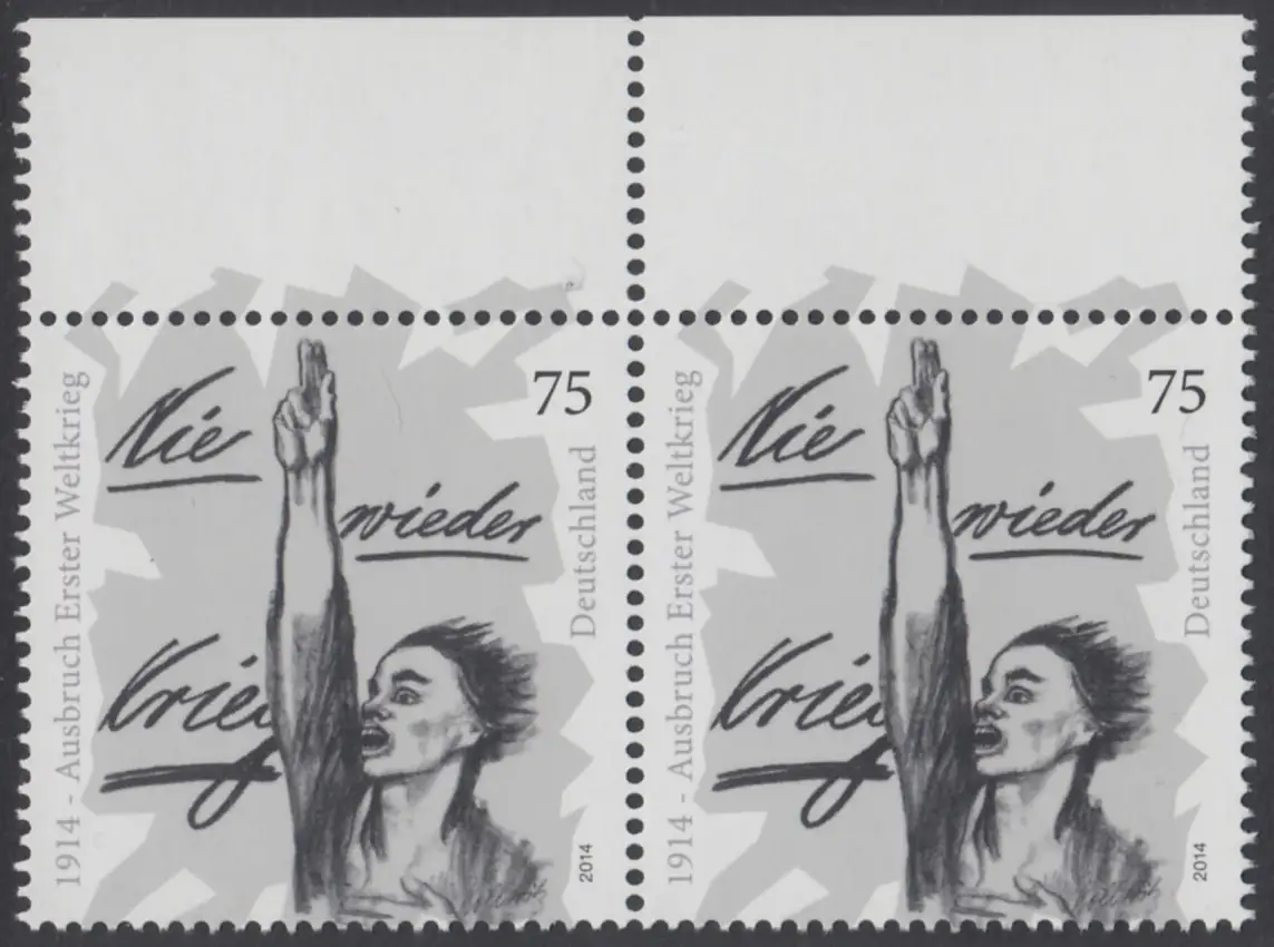BUND 2014 Michel-Nummer 3100 postfrisch horiz.PAAR RÄNDER oben