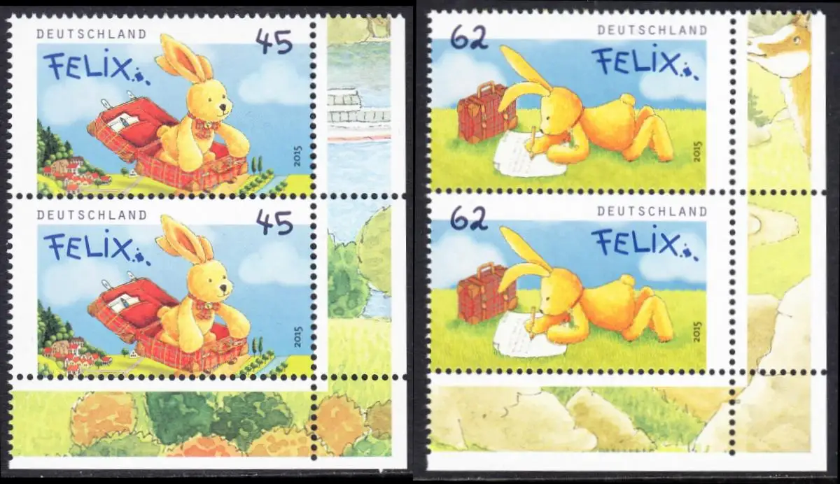 BUND 2015 Michel-Nummer 3140-3141 postfrisch SATZ(2) vert.PAARE ECKRÄNDER unten rechts
