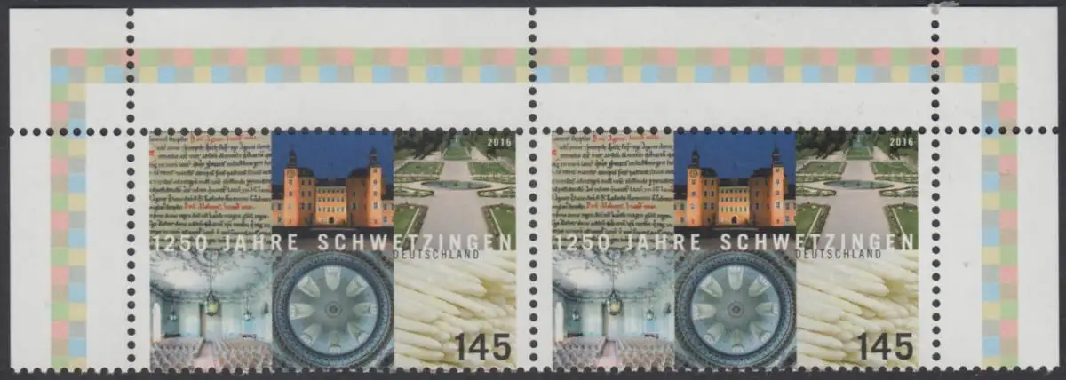 BUND 2016 Michel-Nummer 3204 postfrisch horiz.PAAR ECKRÄNDER oben rechts/links