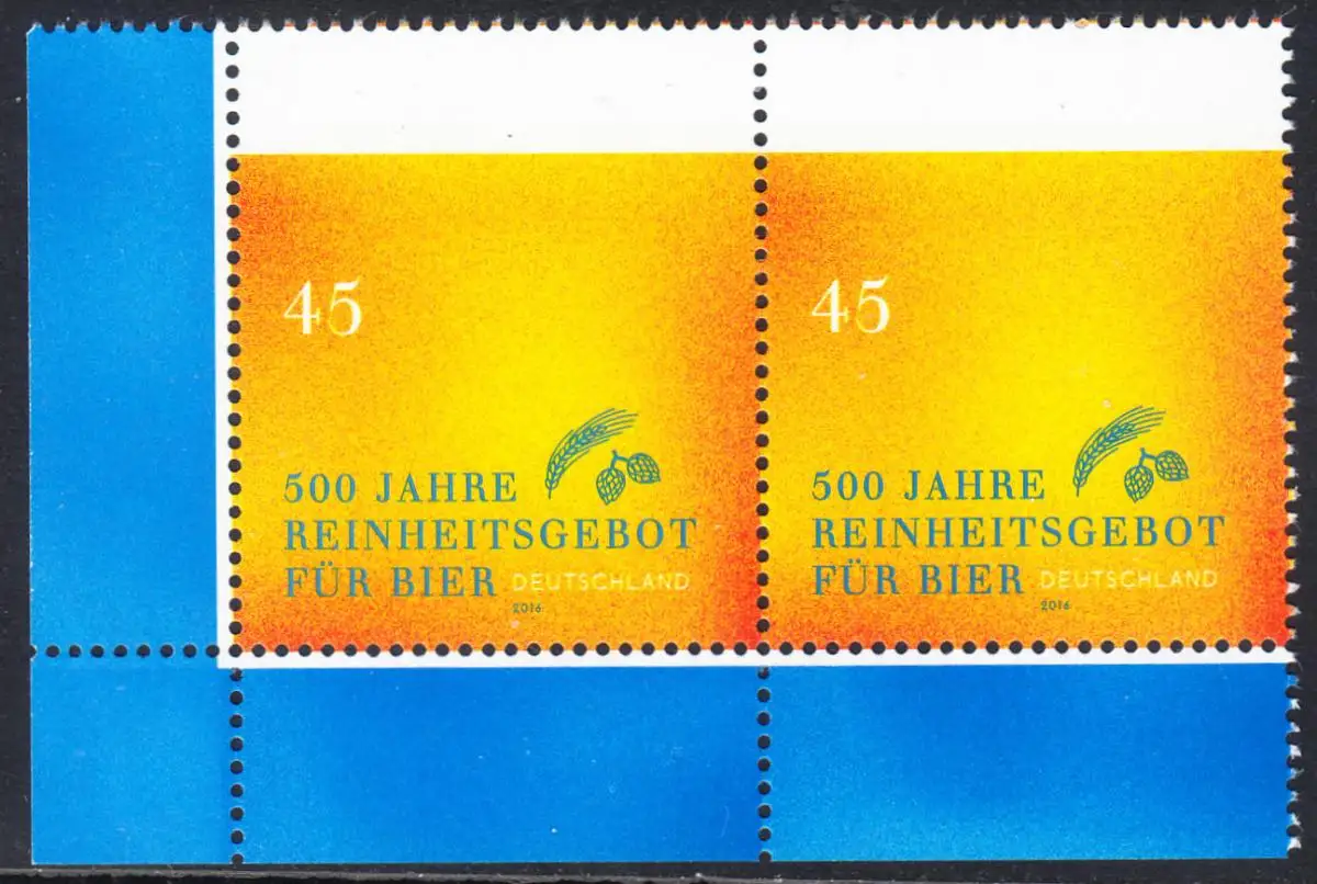 BUND 2016 Michel-Nummer 3229 postfrisch horiz.PAAR ECKRAND unten links