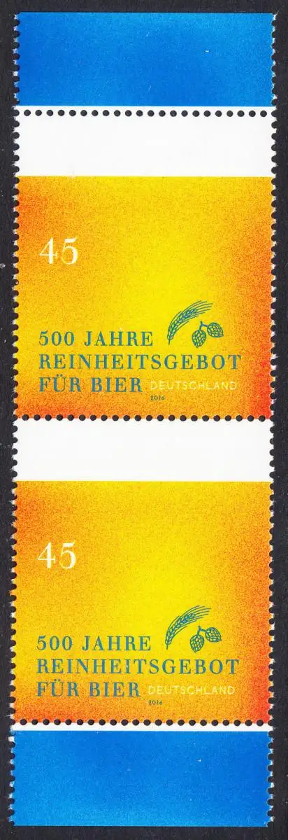 BUND 2016 Michel-Nummer 3229 postfrisch vert.PAAR RÄNDER unten/oben