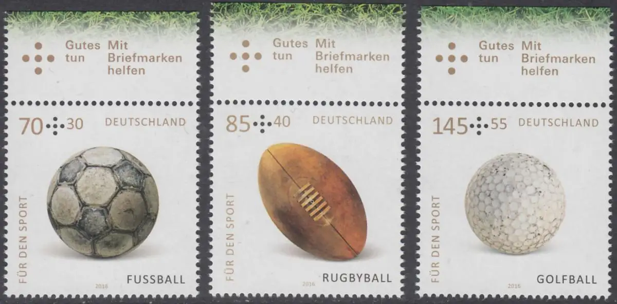 BUND 2016 Michel-Nummer 3235-3237 postfrisch SATZ(3) EINZELMARKEN RÄNDER oben