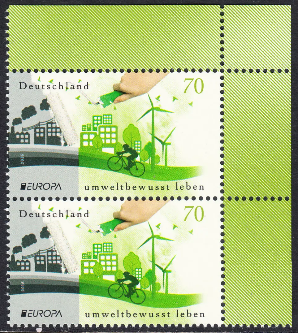 BUND 2016 Michel-Nummer 3238 postfrisch vert.PAAR ECKRAND oben rechts