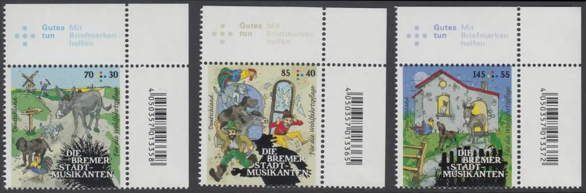 BUND 2017 Michel-Nummer 3282-3284 postfrisch SATZ(3) EINZELMARKEN ECKRÄNDER oben rechts