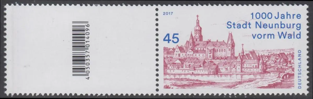 BUND 2017 Michel-Nummer 3290 postfrisch EINZELMARKE RAND links (coil / b) m/ EAN