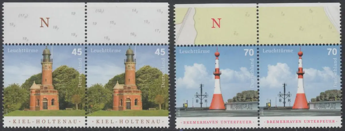 BUND 2017 Michel-Nummer 3316-3317 postfrisch SATZ(2) horiz.PAARE RÄNDER oben (b)