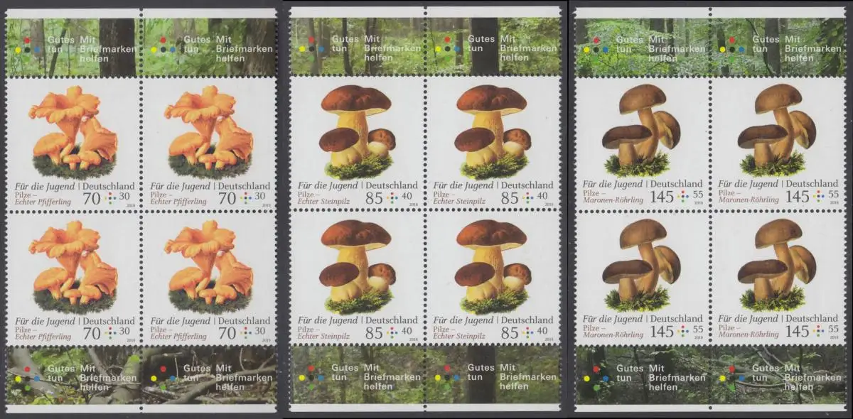 BUND 2018 Michel-Nummer 3407-3409 postfrisch SATZ(3) BLÖCKE RÄNDER oben/unten