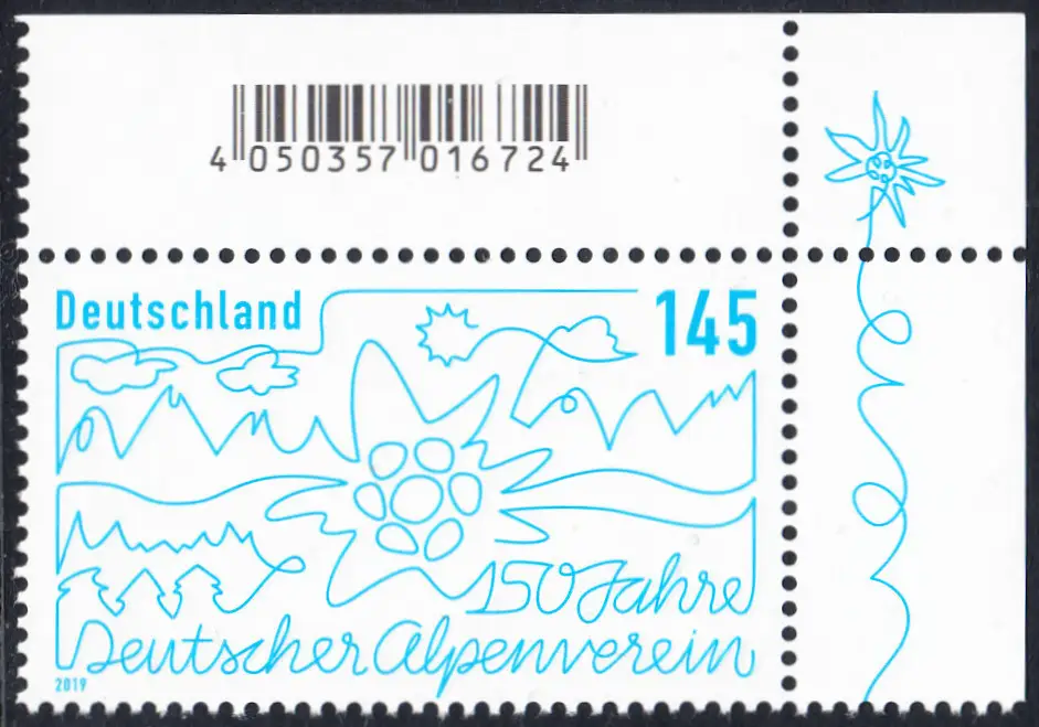 BUND 2019 Michel-Nummer 3456 postfrisch EINZELMARKE ECKRAND oben rechts
