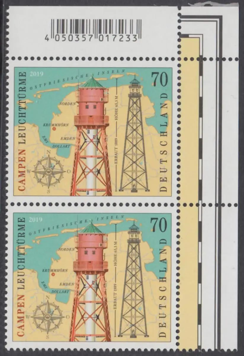BUND 2019 Michel-Nummer 3465 postfrisch vert.PAAR ECKRAND oben rechts